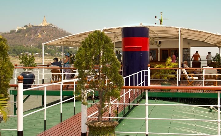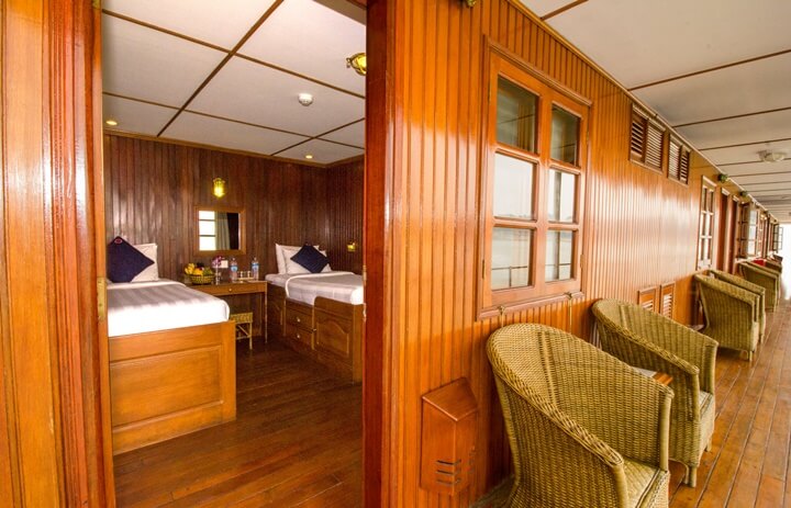 Joining a cruise on Pandaw, you will not only have private space in your comfortable cabin, your journey is also filled with a lot of outdoor experience. There are many vantage points on board allows you to get a panoramic views of the river and observe the world go by such as the promenade decks, observation deck or sitting places outside. The special thing of this ship is that you could open window (except port holes on the lower deck) to enjoy spectacular views while the ship sail forward.