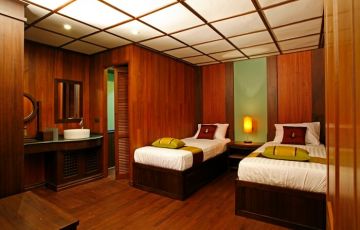 Superior Twin rooms of RV Paukan 2007 blend colonial style with touches of modern Asian design. The room comfortably fits two passengers and opens out on to a promenade that spans the length of the ship.