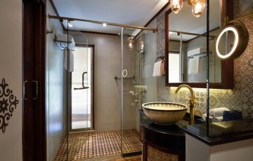 The largest suite on the Sanctuary Ananda boasts a luxurious king-size bed, separate dressing and living areas, plus a big veranda with sun loungers as well as table and chairs. The spacious bathroom will spoil you with a freestanding tub as well as a monsoon shower and his-and-hers sinks. Sanctuary Ananda cruise will also include a private guide, butler service, early morning tea and coffee, complimentary laundry and exclusive dining experiences.
