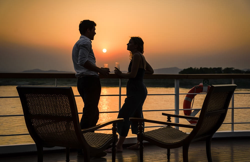 Toast the sunset with one of our signature cocktails as we are back to our jetty while looking forward to a romantic dinner filled with candles on Irrawaddy river banks.