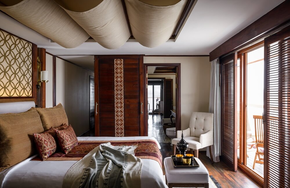 Sanctuary Ananda has four suites with an indoor seating area and a pull-out sofa bed available to accommodate a third person. There is a private balcony with table and chairs, and the ensuite bathroom has a monsoon shower. Other perks include butler service, early morning tea and coffee, and complimentary laundry.